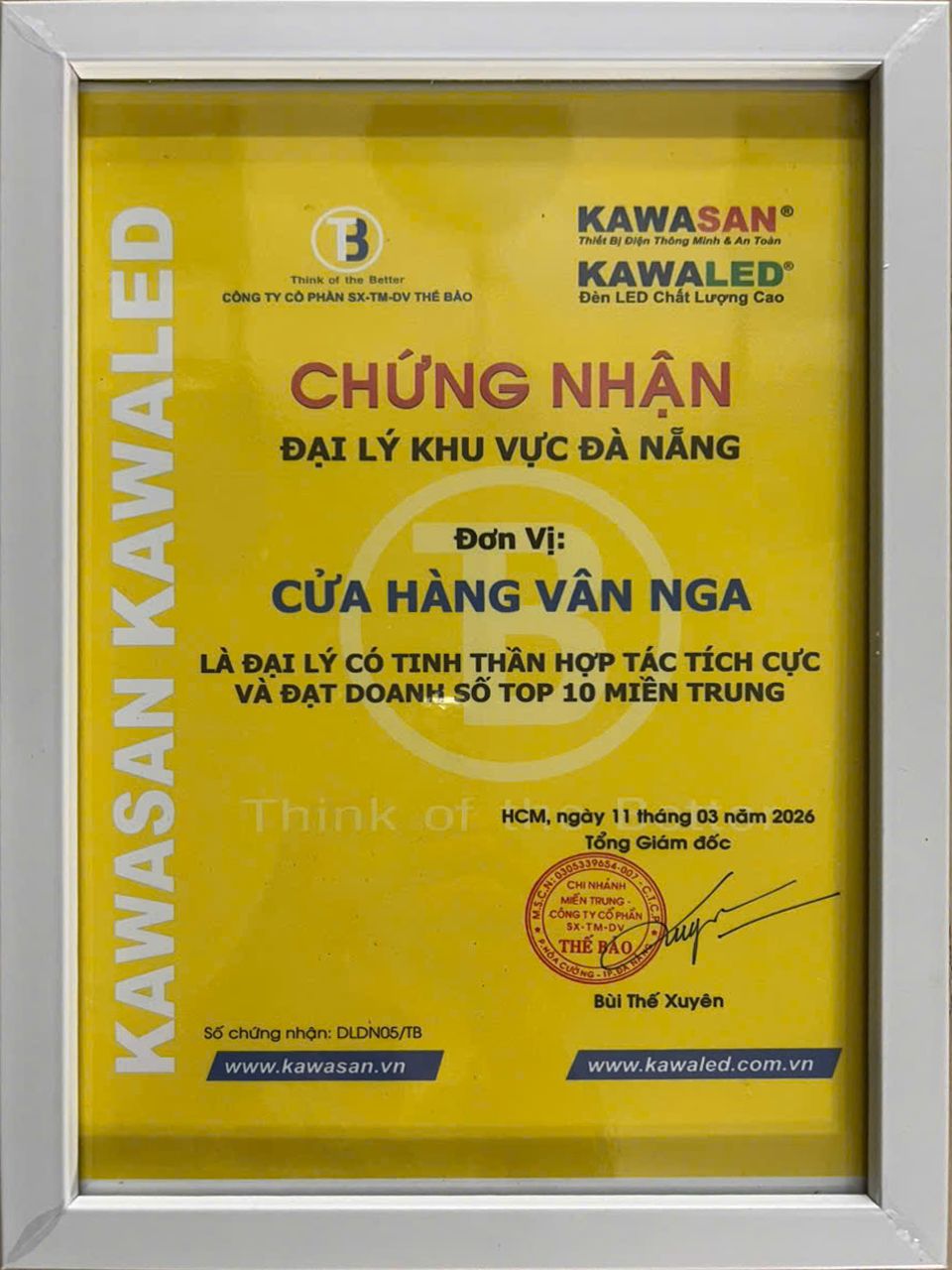 Điện Vân Nga tự hào là đại lý phân phối chính hãng của nhiều thương hiệu vật tư điện uy tín trên thị trường như KAWASAN, CADISUN, CADIVI và DAPHACO. Các sản phẩm do Vân Nga cung cấp đều có đầy đủ chứng chỉ chất lượng, nguồn gốc xuất xứ rõ ràng, đáp ứng các tiêu chuẩn kỹ thuật trong ngành điện. Nhờ hợp tác trực tiếp với các hãng, Điện Vân Nga cam kết mang đến cho khách hàng giải pháp thiết bị điện an toàn, bền bỉ và giá thành cạnh tranh cho mọi công trình.