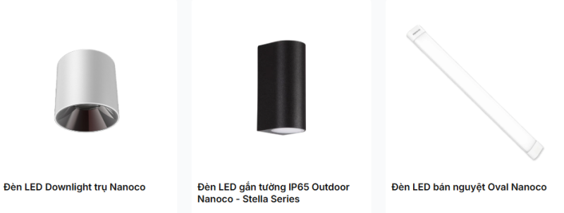 Danh mục sản phẩm chiếu sáng Nanoco: